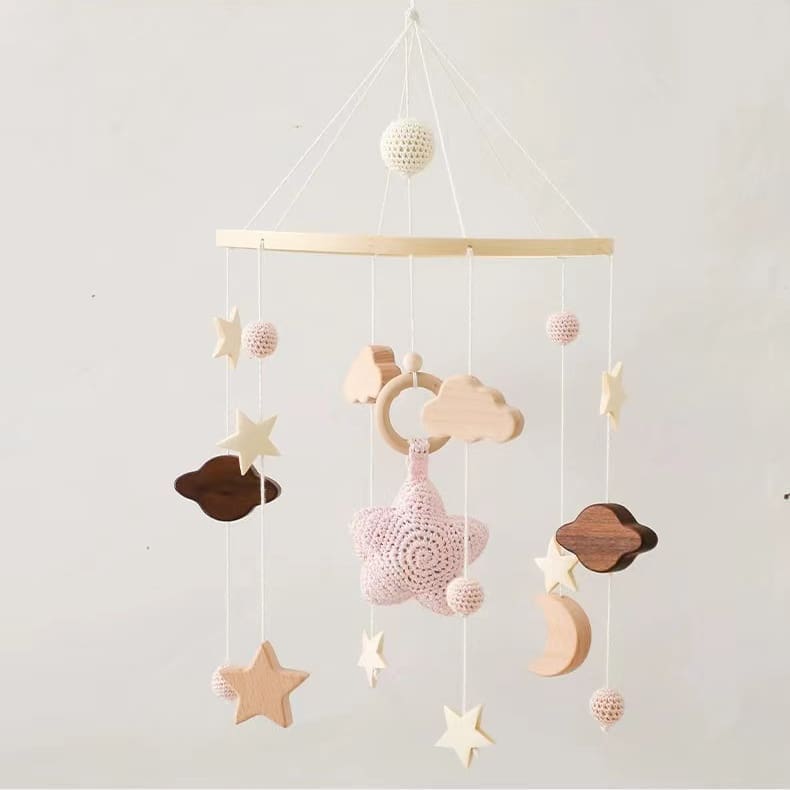 DREWNIANA KARUZELA Z ZAWIESZKAMI RÓŻOWE NIEBO DO ŁÓŻECZKA