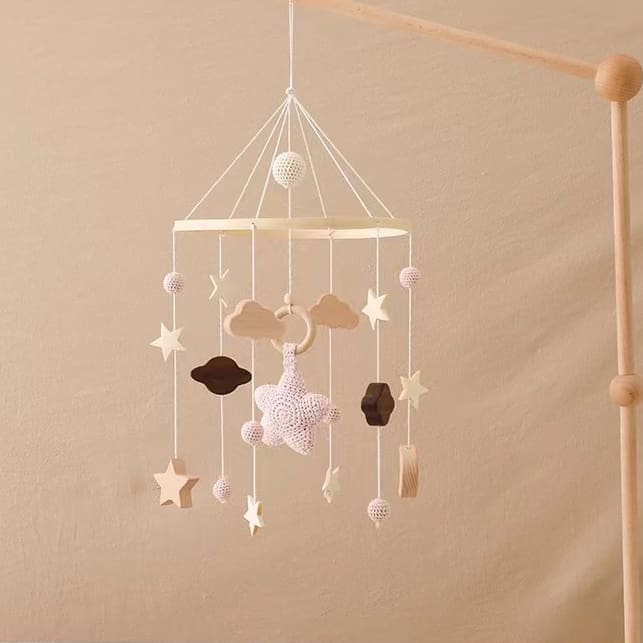 Karuzelkę można zawiesić na haczykach w suficie lub za pomocą ruchomych ramion przymocowanych do łóżeczka, które nie tylko wspierają rozwój słuchowy i motoryczny dziecka oraz stymulację wzrokową, ale także działają uspokajająco, gdy dziecko siedzi w łóżeczku lub budzi się ze snu.