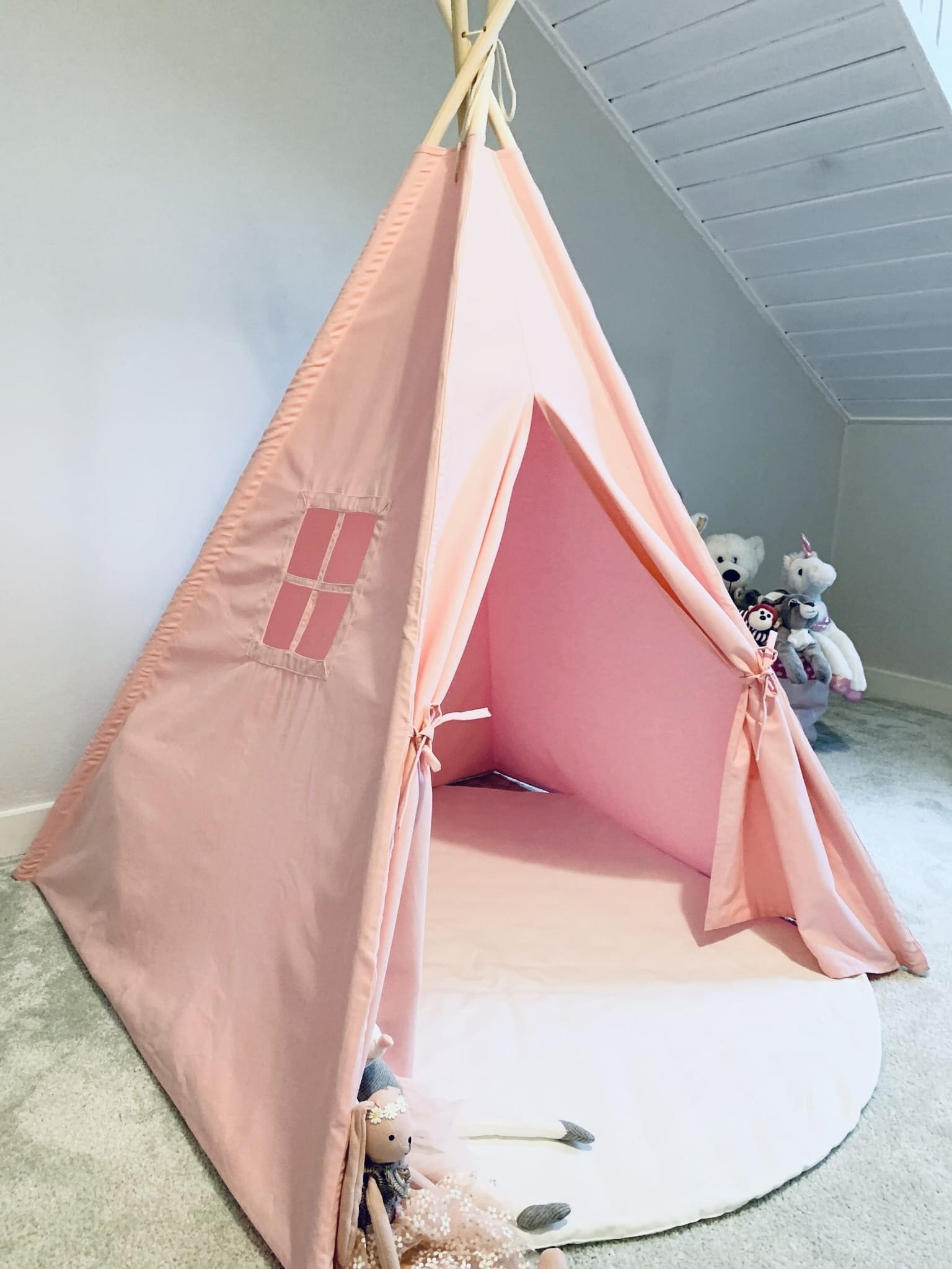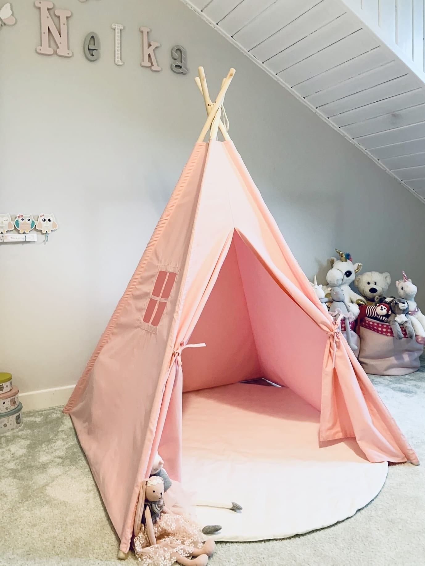 Tipi to świetna propozycja na prezent dla każdego dziecka. Zwieńczenie tipi można udekorować według własnego uznania, jak na przedstawionych zdjęciach, zachęcając do dziecięcej kreatywności.