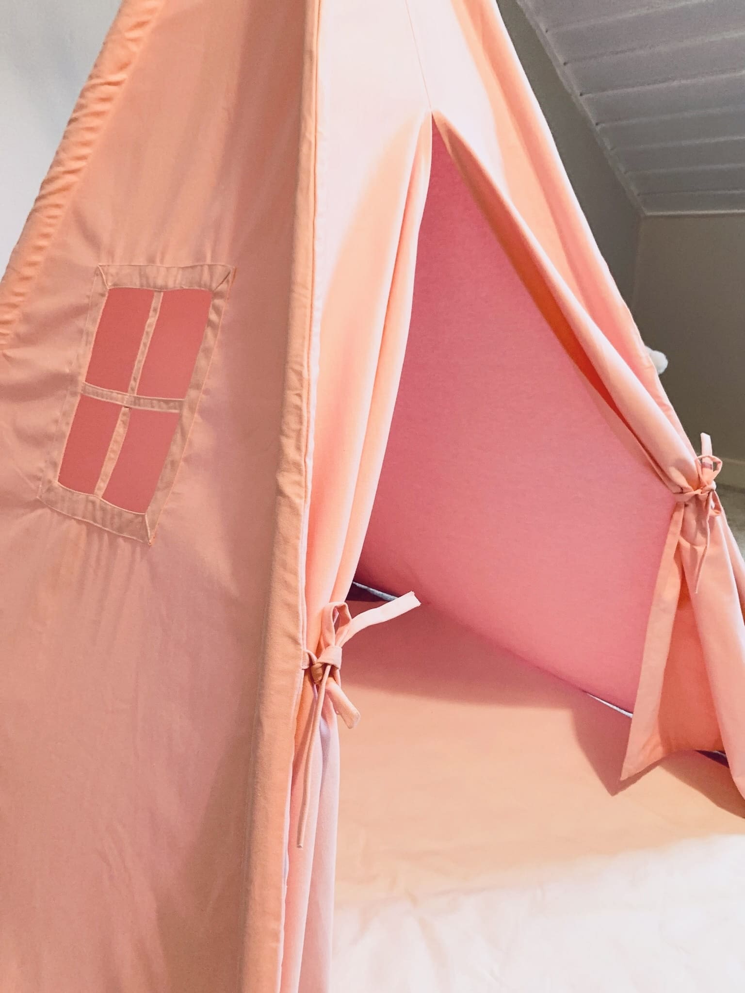 Nasze tipi wykonane z materiałów: 85% tkaniny bawełnianej, 15% poliester, sosnowych kijów. Namiot po rozłożeniu jest stabilny, kije są wyoblone. Tipi świetnie sprawdzi się w domu, w ogrodzie czy na plaży.