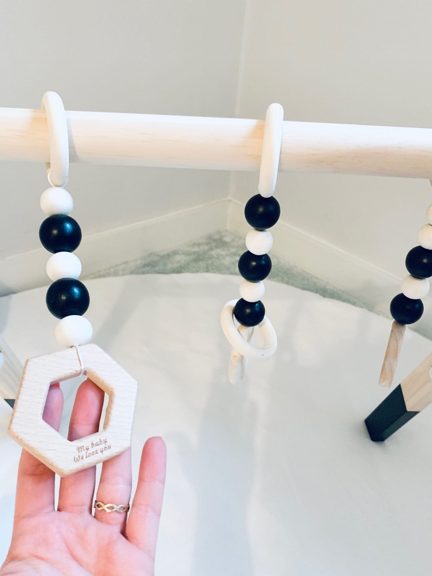 Stojak edukacyjny Baby Gym, w kolorze biało – czarnym